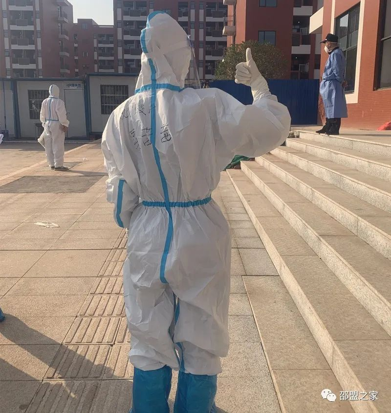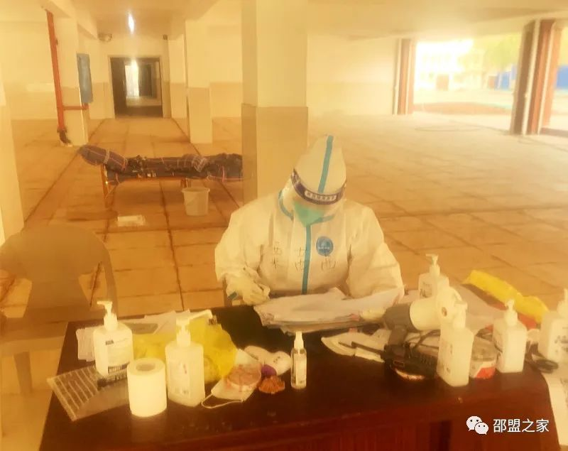 相信昨晚我們組的志愿者都沒太睡好,因為隨時會通知我們接收隔離人員,所以都沒睡的太沉,不敢漏掉任何消息。天剛蒙蒙亮便接通知:快速吃完早餐,穿上防護服進隔離區,我們1棟要開始進隔離人員了!